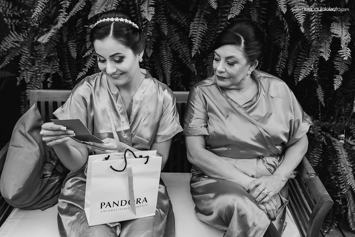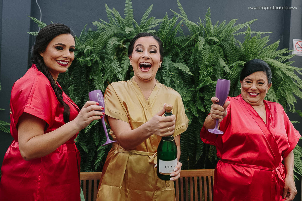 O making of com a mãe e a irmã foi um momento de compartilhar muitos sorrisos. Desde o presente dado pelo noivo, até a leve dificuldade para abrir a garrafa de champagne (gente, não é fácil mesmo! já vi muito noivo passando aperto na hora do brinde rs). Depois foi hora de finalizar os últimos detalhes. Tudo muito especial e delicado, assim com essa noivinha.