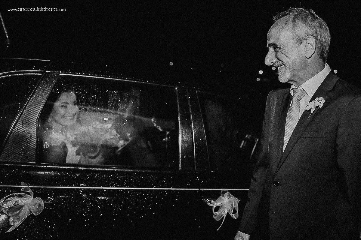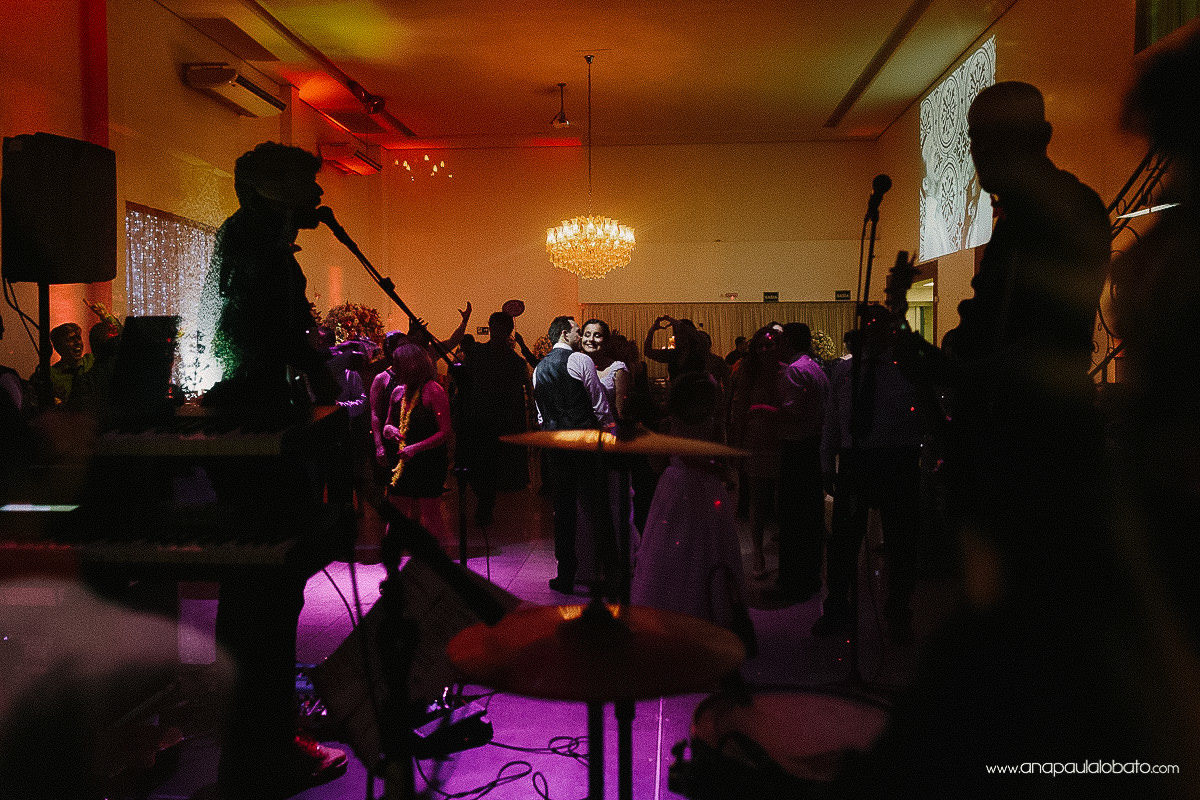 Um pouco antes da cerimônia, começou a chover, mas isso acabou dando mais charme às fotos do casamento. Melhor ainda, foi que a chuva fez a delicadeza da Simone ser mais realçada com o cuidado do pai. Depois de entregá-la ao André, tivemos a última cerimônia de casamento do ano na Igrejinha da Pampulha. De lá fomos comemorar no Buffet Rosa Miranda, que é bem pertinho da Igreja. E então, foi só a banda Grata Dose começar a tocar, que ninguém conseguiu ficar parado… Tem jeito melhor de comemorar essa união?