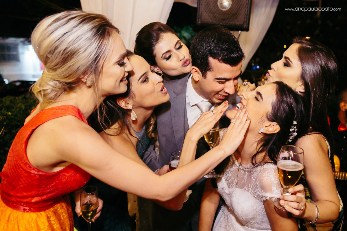 A voz delicada, combinando com o rosto de menina, fez todo mundo sorrir na hora do “sim”. E assim, a alegria que já era enorme ficou ainda maior ao ver esses dois se tornando um. E isso foi só pra começar… É difícil descrever tanta coisa incrível em uma só festa, que encantava com a beleza da noiva destacada nas mãos do Menu de Maquiagem, com a decoração impecável do Museu de Grandes Novidades, com a música dos meninos da Grata Dose e depois superou com a chegada dos “tequileiros”. Caras e bocas foi o que não faltou, e os motivos pra sorrir se multiplicaram ao longo do dia…