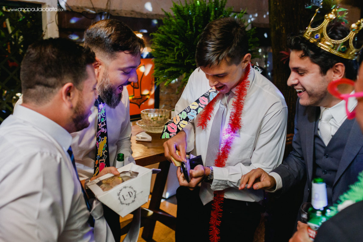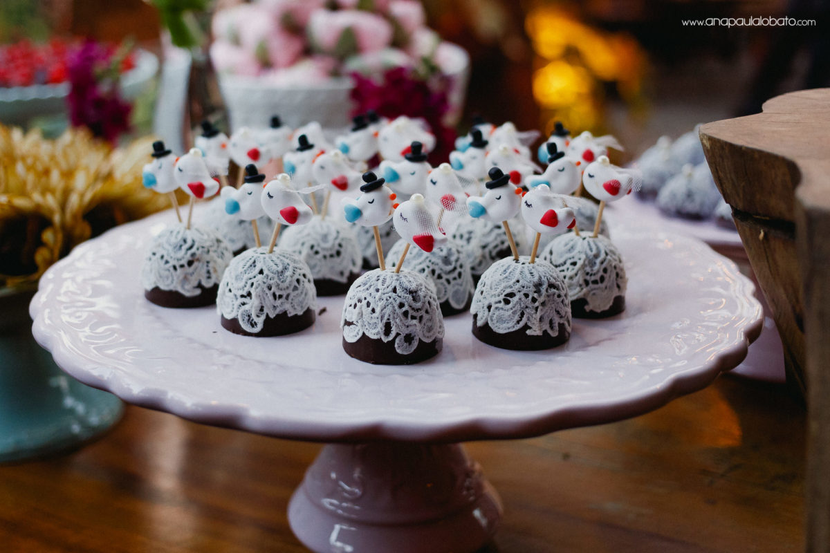 A decoração delicada do lugar, com mesas de madeira e flores espalhadas, reforçou ainda mais a ideia de intimidade. Os bombons estavam divinos, como o próprio nome diz! A cerimônia realizada debaixo da árvore deu aquele charme que toda noiva busca no grande dia. E depois da dança coladinha, a animação da boate foi responsável por construir o resto dessa história!
